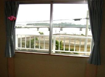 ベランダより仲間川(河口・橋)が正面